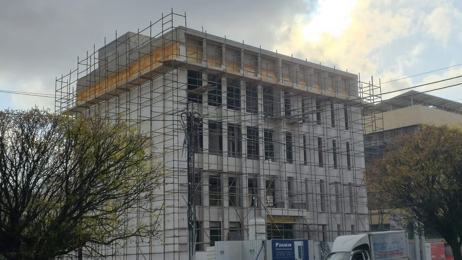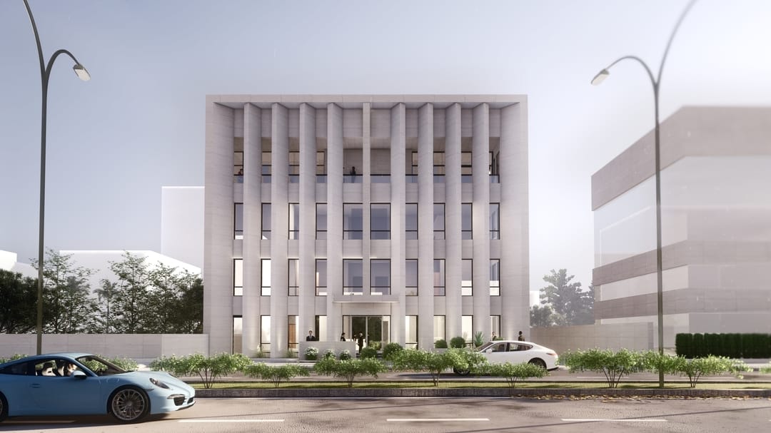 Located on the prominent Zahran Street in Amman, Jordan, this office building boasts a unique design that sets it apart from conventional structures. The façade features tall stone louvers, crafted from local stone, which wrap around the building, providing shade and filtering natural light.